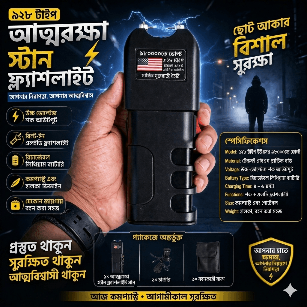 āύāĻŋāĻā§āϰ āύāĻŋāϰāĻžāĻĒāϤā§āϤāĻžāϰ āĻāύā§āϝ āĻŦā§āϝāĻŦāĻšāĻžāϰ āĻāϰā§āĻ¨Â 928 Type Self Defense Stun Flashlight āĨ¤ āĻāĻāĻŋ āĻāĻāĻāĻŋ āĻšāĻžāĻ āĻā§āϞā§āĻā§āĻ āĻļāĻ āĻĄāĻŋāĻāĻžāĻāϏ āĻāĻŦāĻ LED āĻĢā§āϞā§āϝāĻžāĻļāϞāĻžāĻāĻ, āϝāĻž āĻāϰā§āϰāĻŋ āĻĒāϰāĻŋāϏā§āĻĨāĻŋāϤāĻŋāϤ⧠āĻāϤā§āĻŽāϰāĻā§āώāĻžāϰ āĻāύā§āϝ āĻāĻžāϰā§āϝāĻāϰāĨ¤ āĻā§āĻ, āĻšāĻžāϞāĻāĻž āĻāĻŦāĻ āϏāĻšāĻā§ āĻŦāĻšāύāϝā§āĻā§āϝāĨ¤â High Voltage Shock Output â Built-in LED Flashlight â Rechargeable Lithium Battery â Compact & Lightweight Design â Easy to Carry
